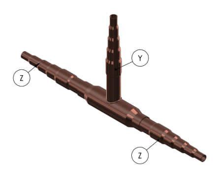On all branches with a diameter greater than 1", an external reinforcement is mounted on the tube to provide increased resistance to operating pressures.